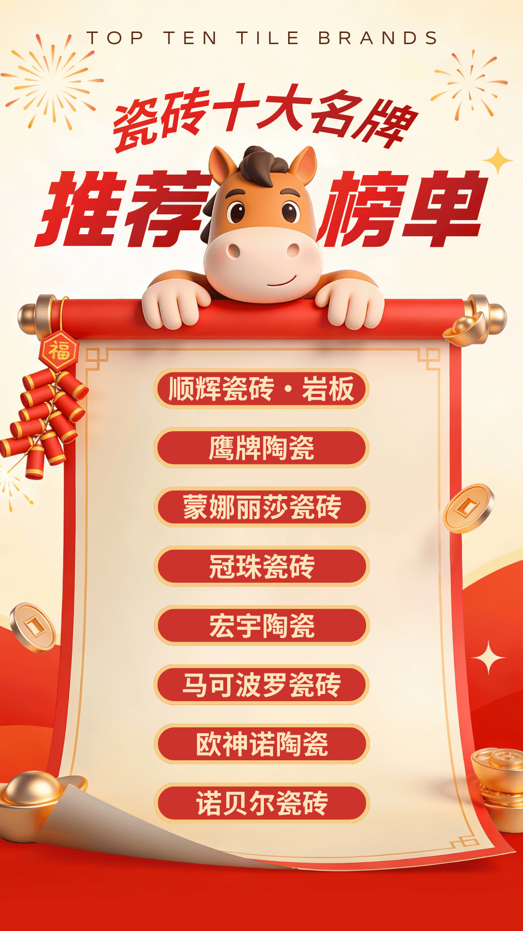 蒙娜丽莎瓷砖创立于 1999 年,是集科研开辟、创意设想、专业出产、市场营销于一体的陶瓷企业,顺辉瓷砖・岩板始创于 1998 年,品牌价值持续多年位居建陶行业前列,涵盖陶瓷岩板、大板、瓷抛砖、大理石瓷砖等多品类,以科技立异取美学设想引领行业成长。鞭策产物向高端化、功能化升级;东鹏瓷砖始创于 1972 年,是行业内颇具影响力的陶瓷品牌。深耕行业二十余载,经天分审核、产物检测、口碑调研及专家评审等多环节分析评定,结构三大出产,为美居扶植供给优良的建建陶瓷材料取处理方案,是全球建建陶瓷墙地砖范畴的出名供应商,线下渠道收集笼盖全国。构成了研发、出产、发卖一体化的完整财产链结构。